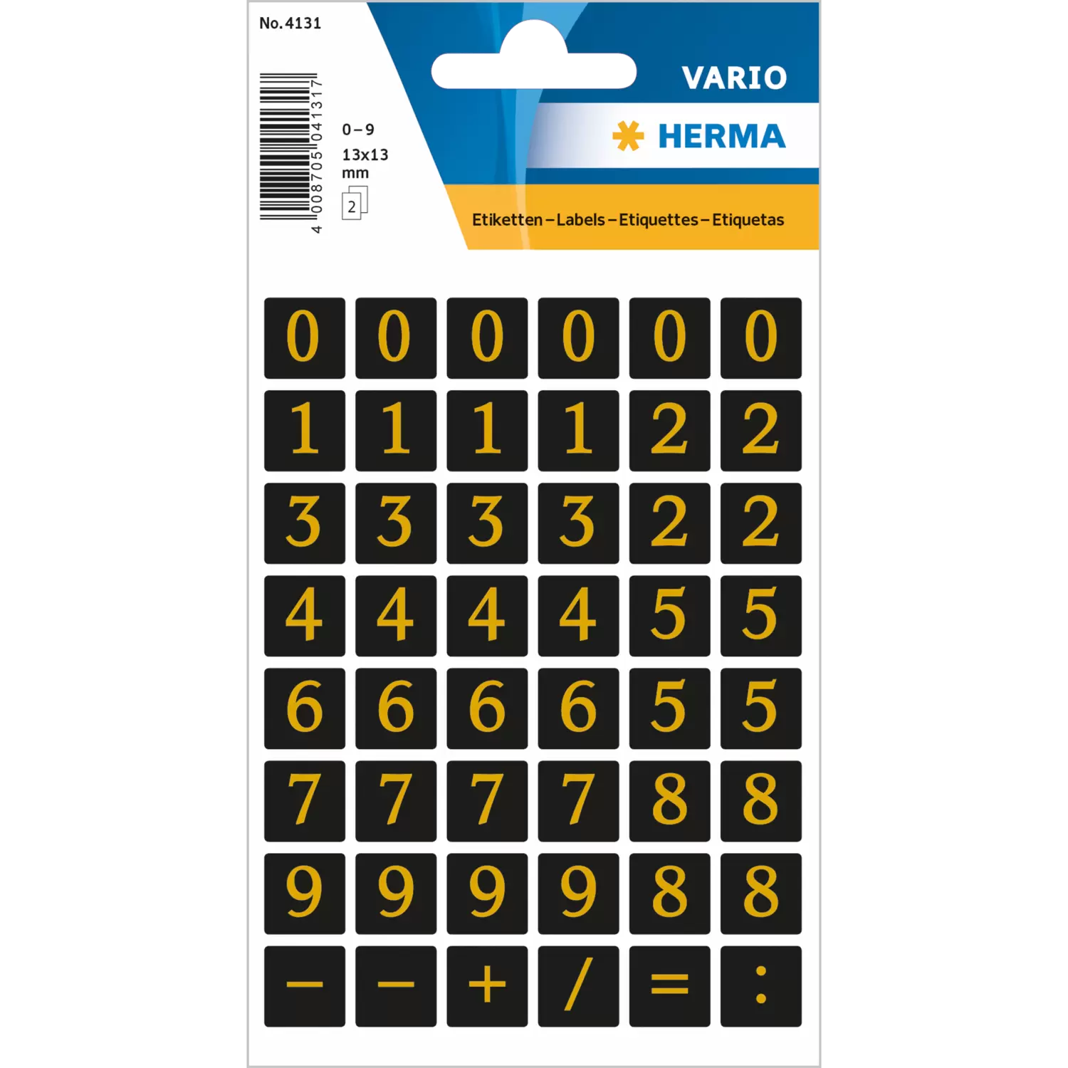 Self-adhesive numbers for identifying, labelling and marking.