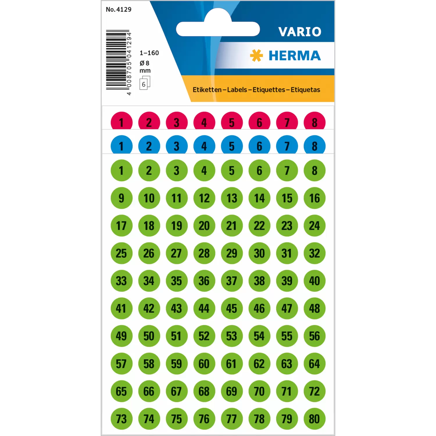 Numbers Ø 8 mm 1-160 paper assorted colours black 6 sheets