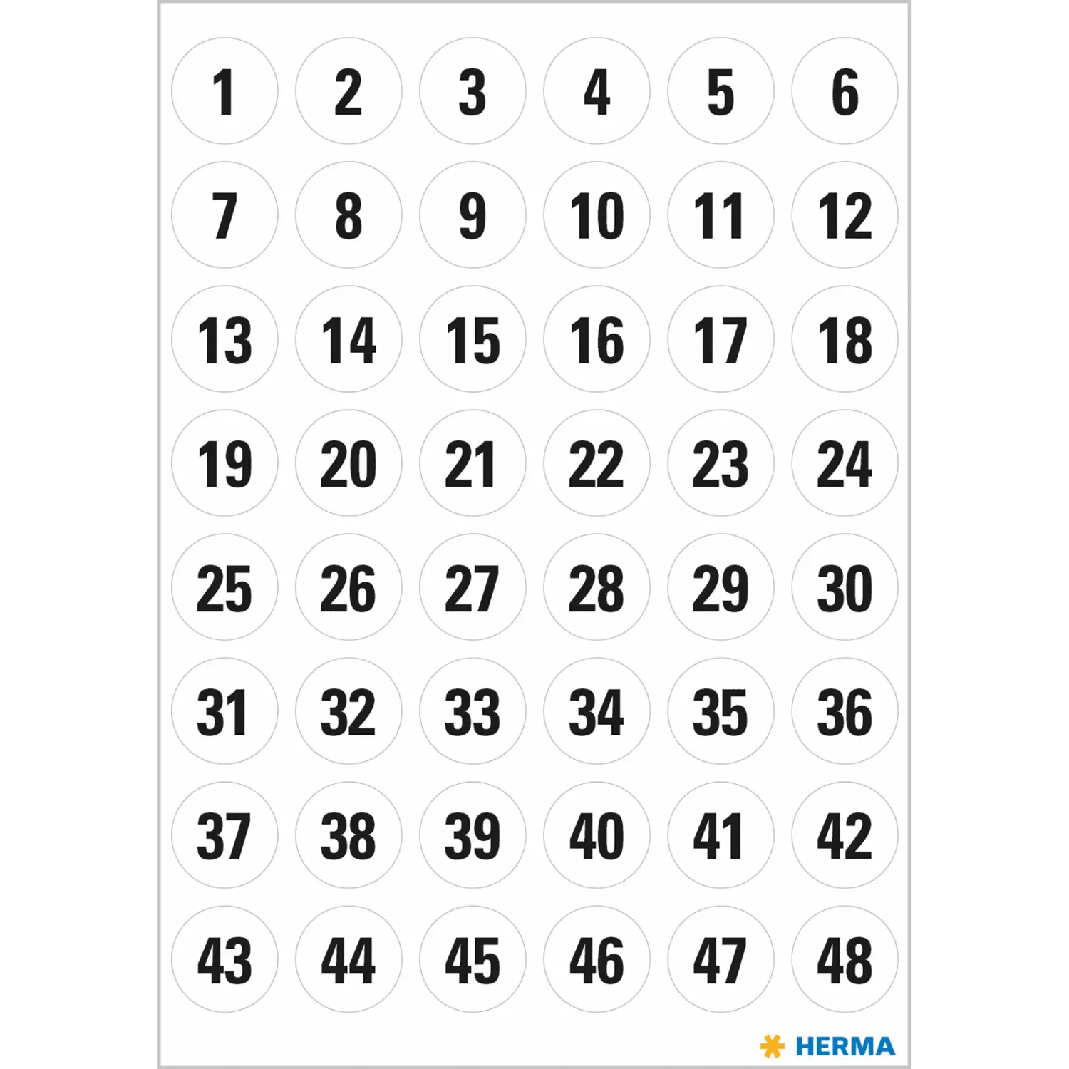 Numbers Ø 12 mm 1-240 paper white black 5 sheets