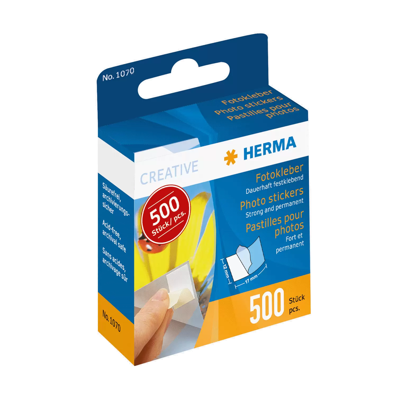 - HERMA photo stickers, permanent adhesive, double-sided self-adhesive paper stickers, front side covered with protective paper
