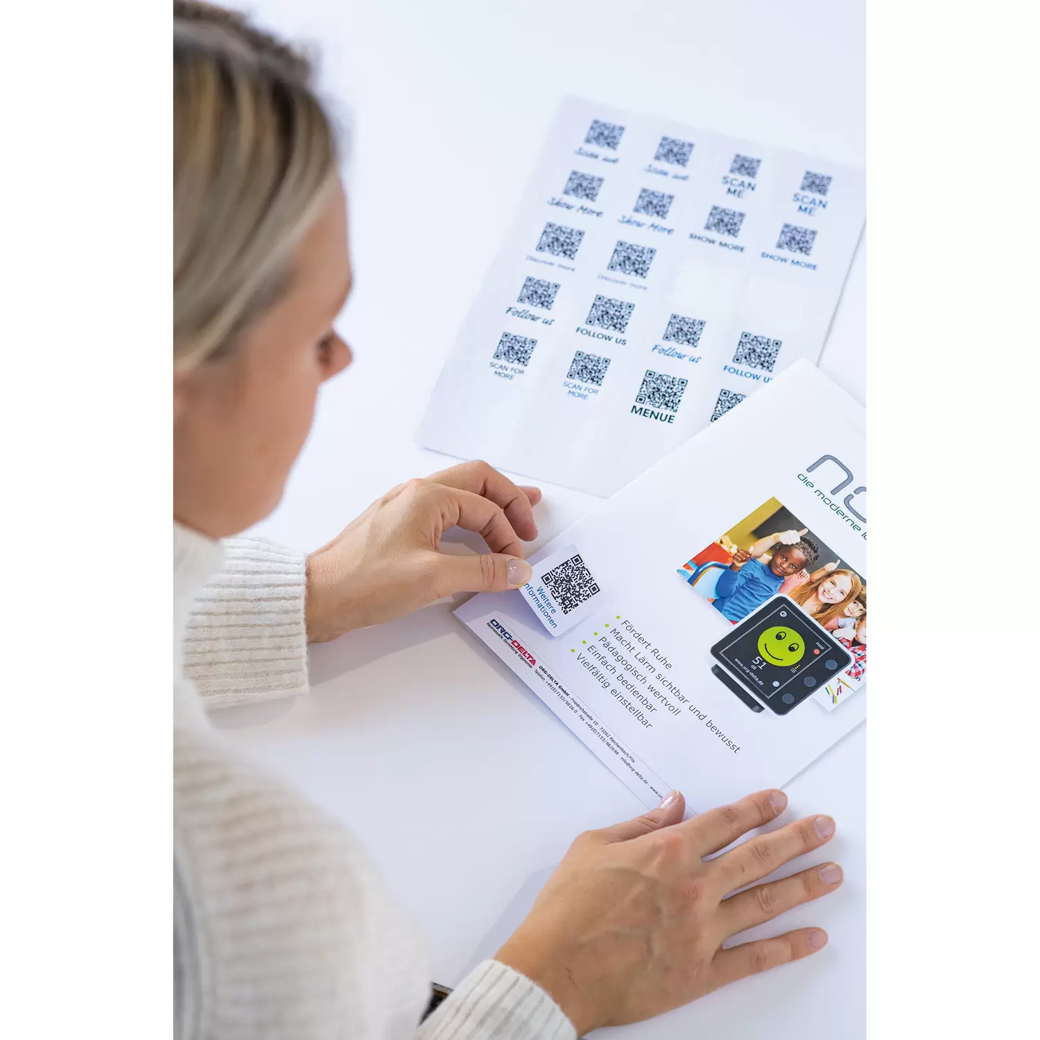 QR code labels A4, 40 x 40 mm, white, opaque, permanent adhesion