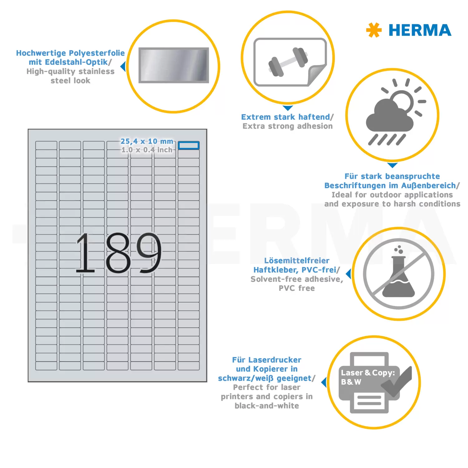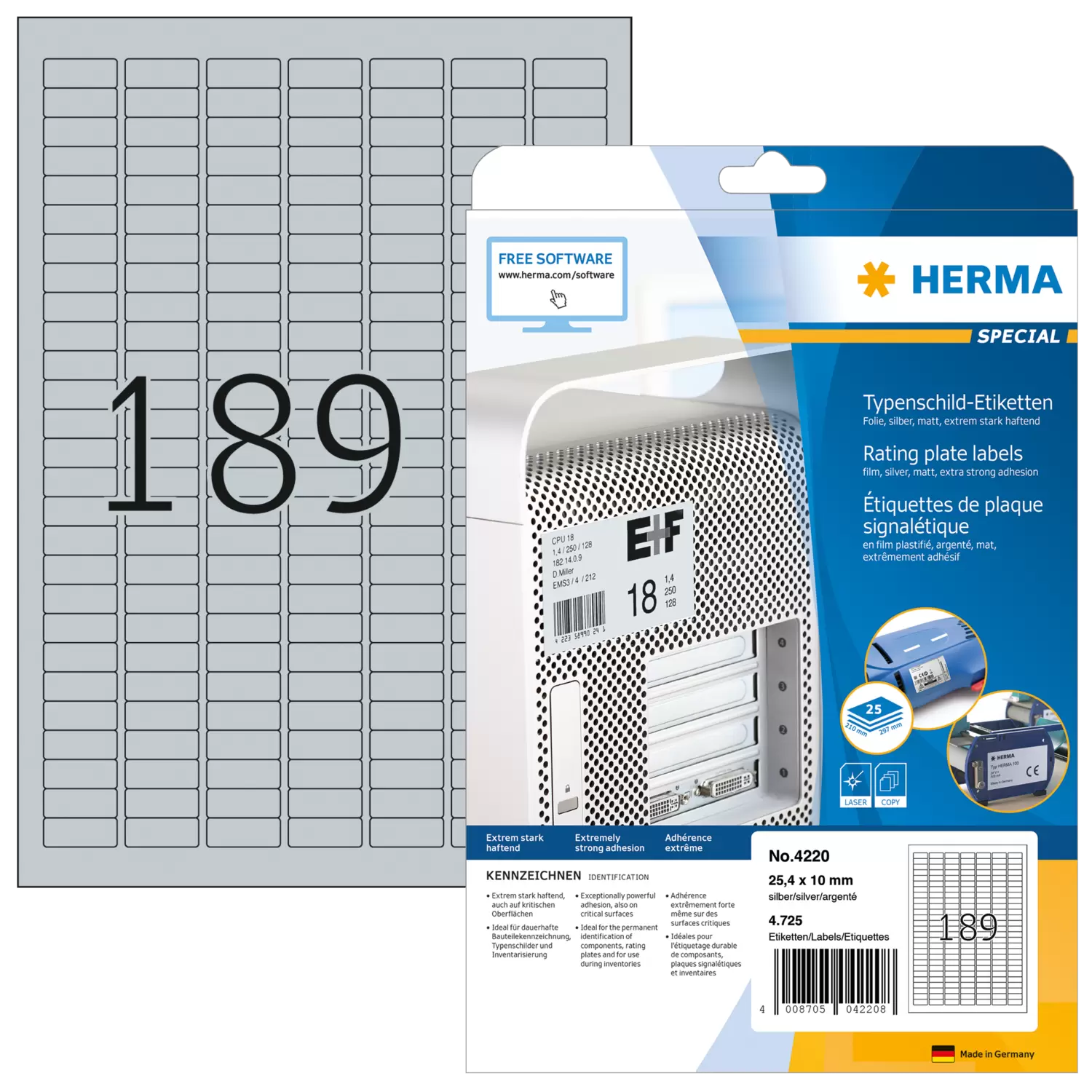 Rating plate labels, silver A4, 25,4 x 10 mm, extremely strong adhesion, weatherproof, tearproof