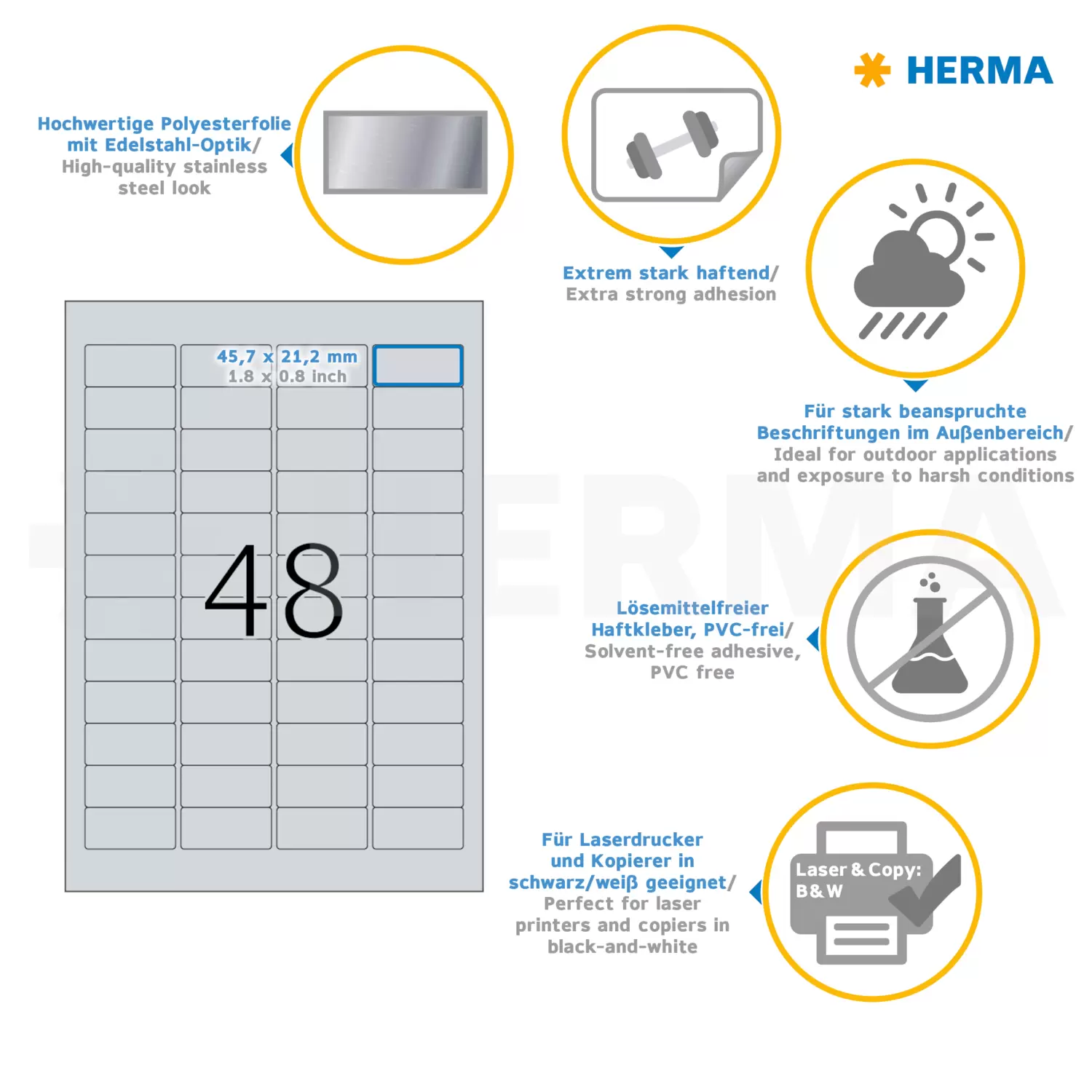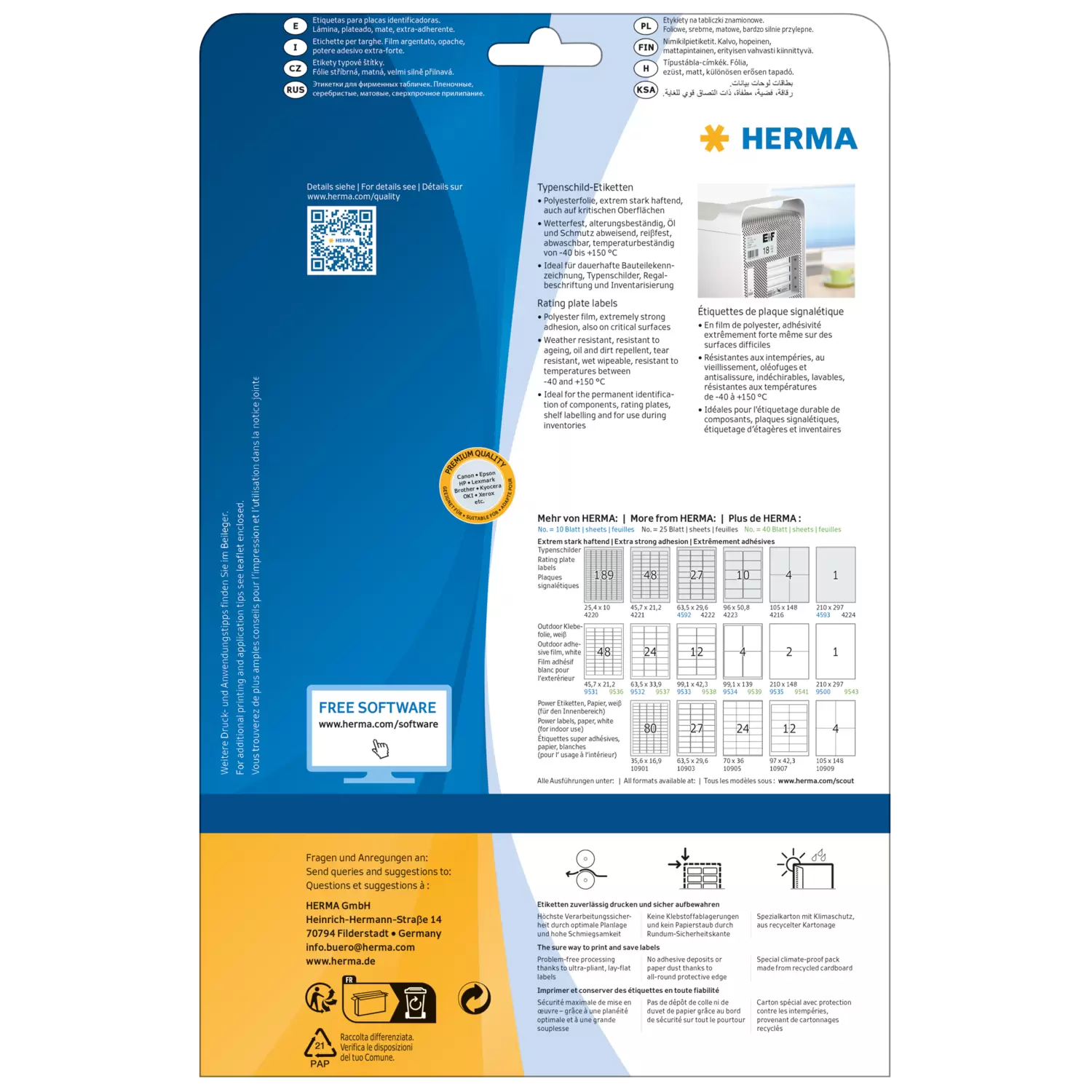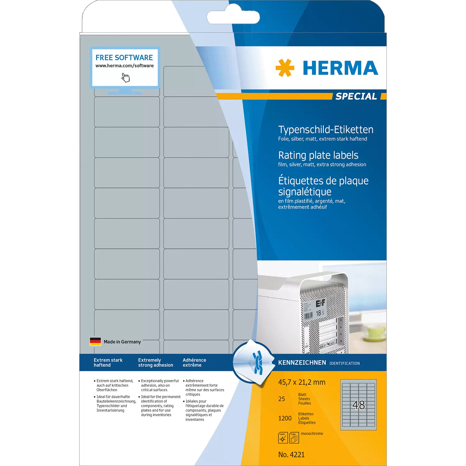 Rating plate labels, silver A4, 45,7 x 21,2 mm, extremely strong adhesion, weatherproof, tearproof