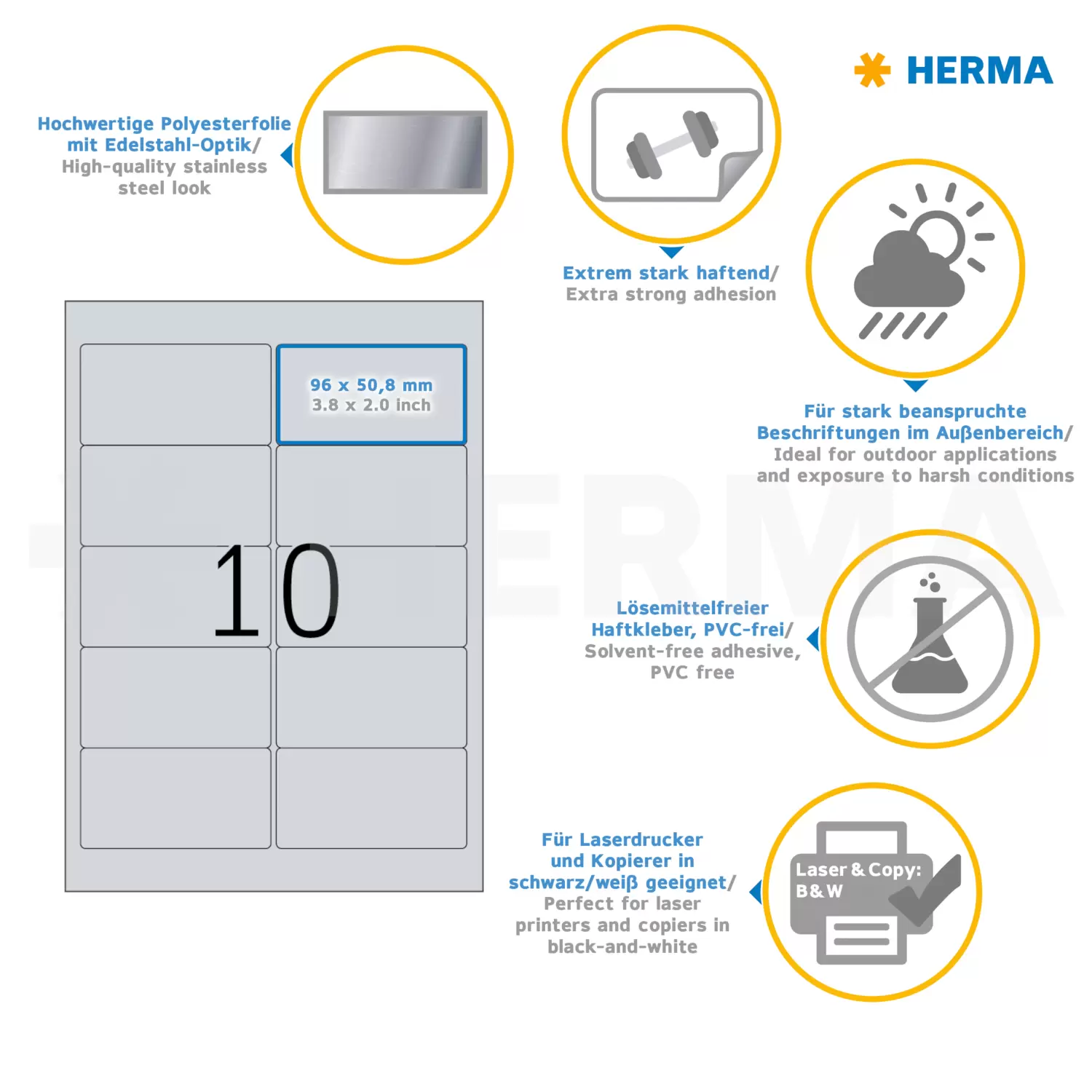 Rating plate labels, silver A4, 96 x 50,8 mm, extremely strong adhesion, weatherproof, tearproof