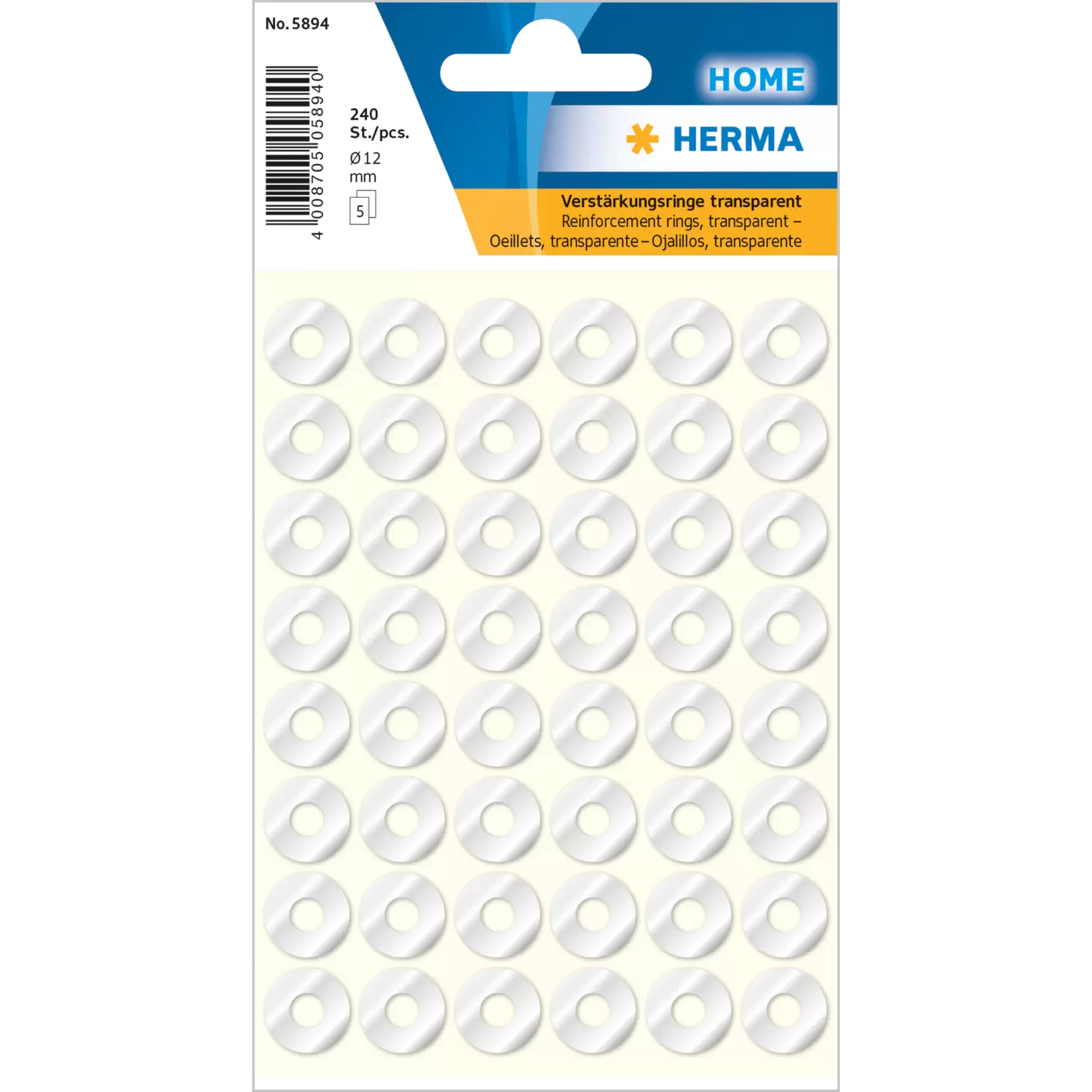 Reinforcement rings self-adhesive Ø 12 mm transparent 240 pcs.