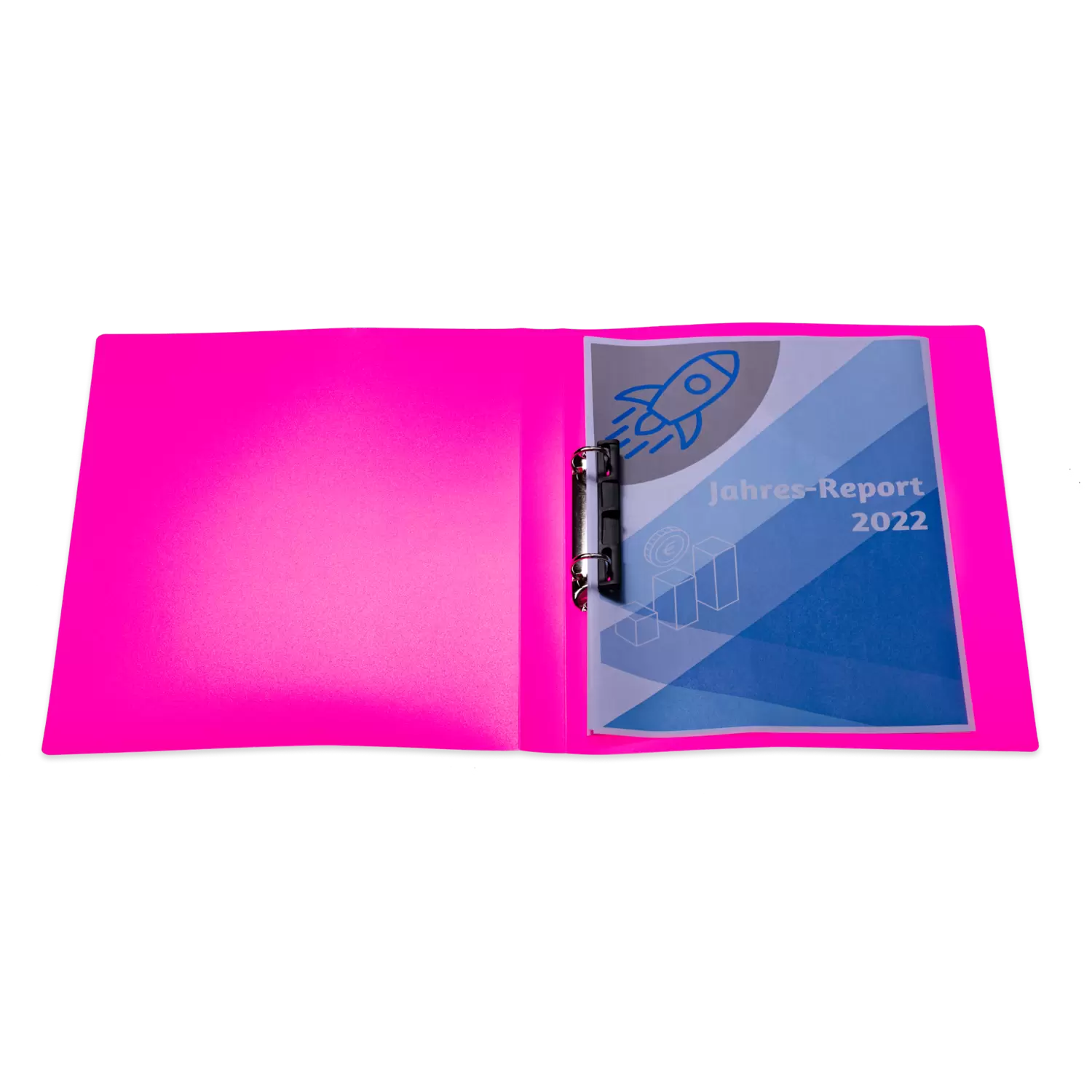 - High-quality neon pink ring binder made of sturdy polypropylene