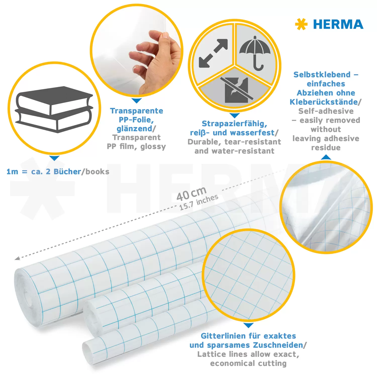 Self-adhesive book cover film is about 60 µm thick.