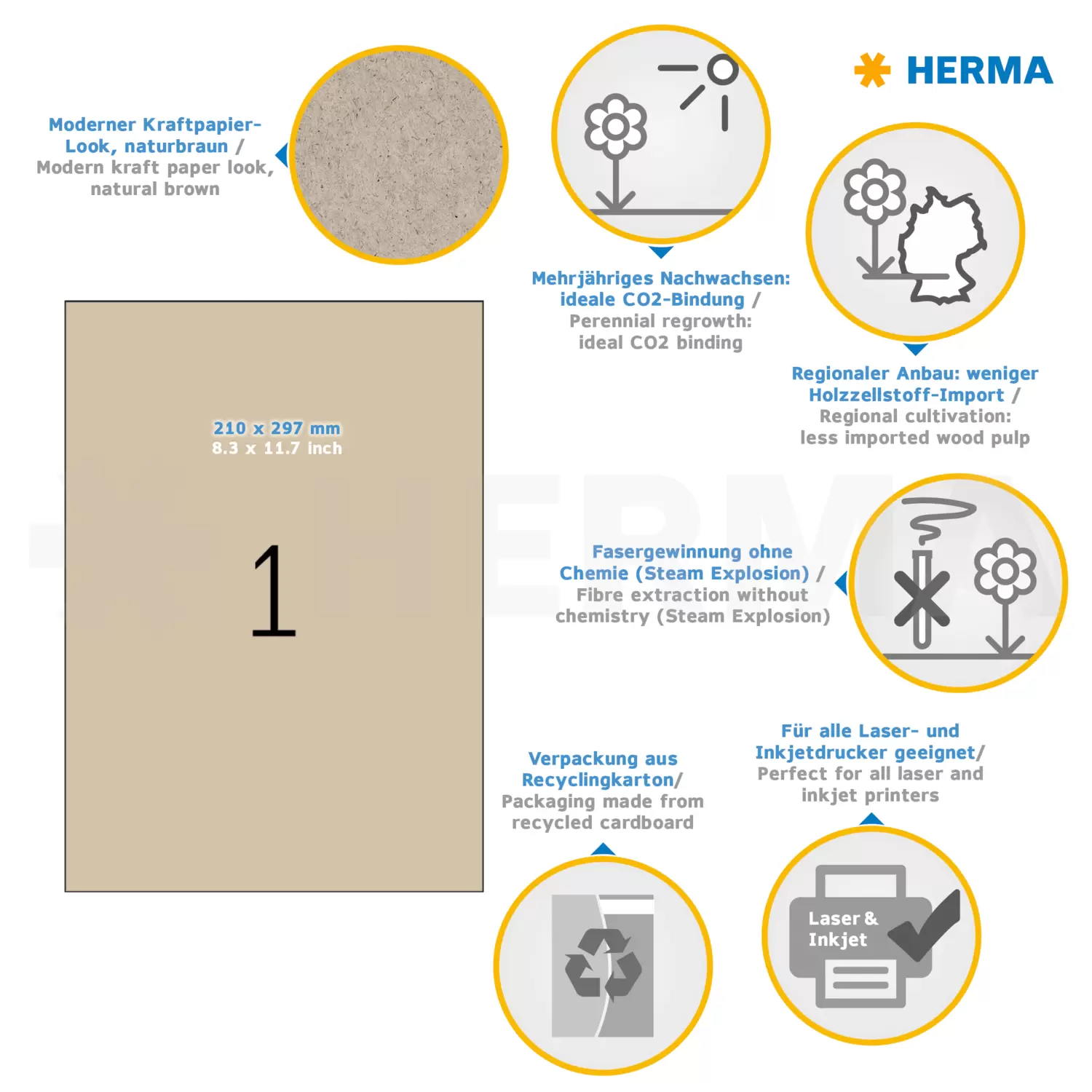 Labels made of silphie paper A4, 210 x 297 mm, natural-brown, permanent adhesion