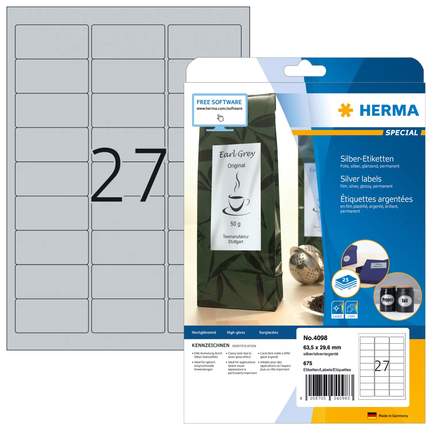 - High-quality labels with a glossy effect for exclusive appearance. Oil and dirt-repellent, wet-wipeable