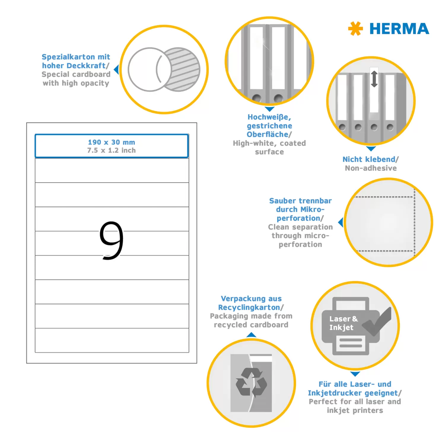 - White cardboard, microperforation ensures clean separation