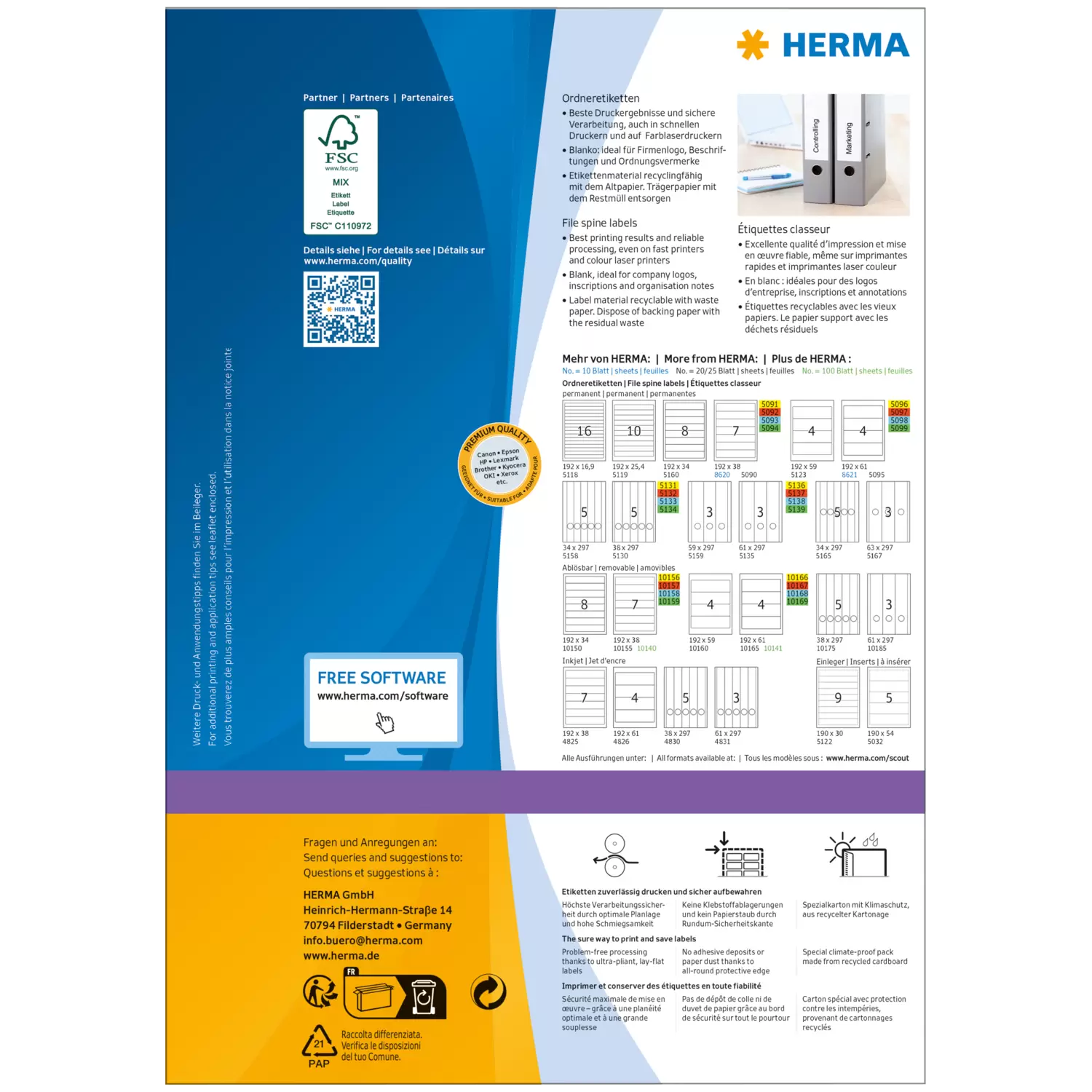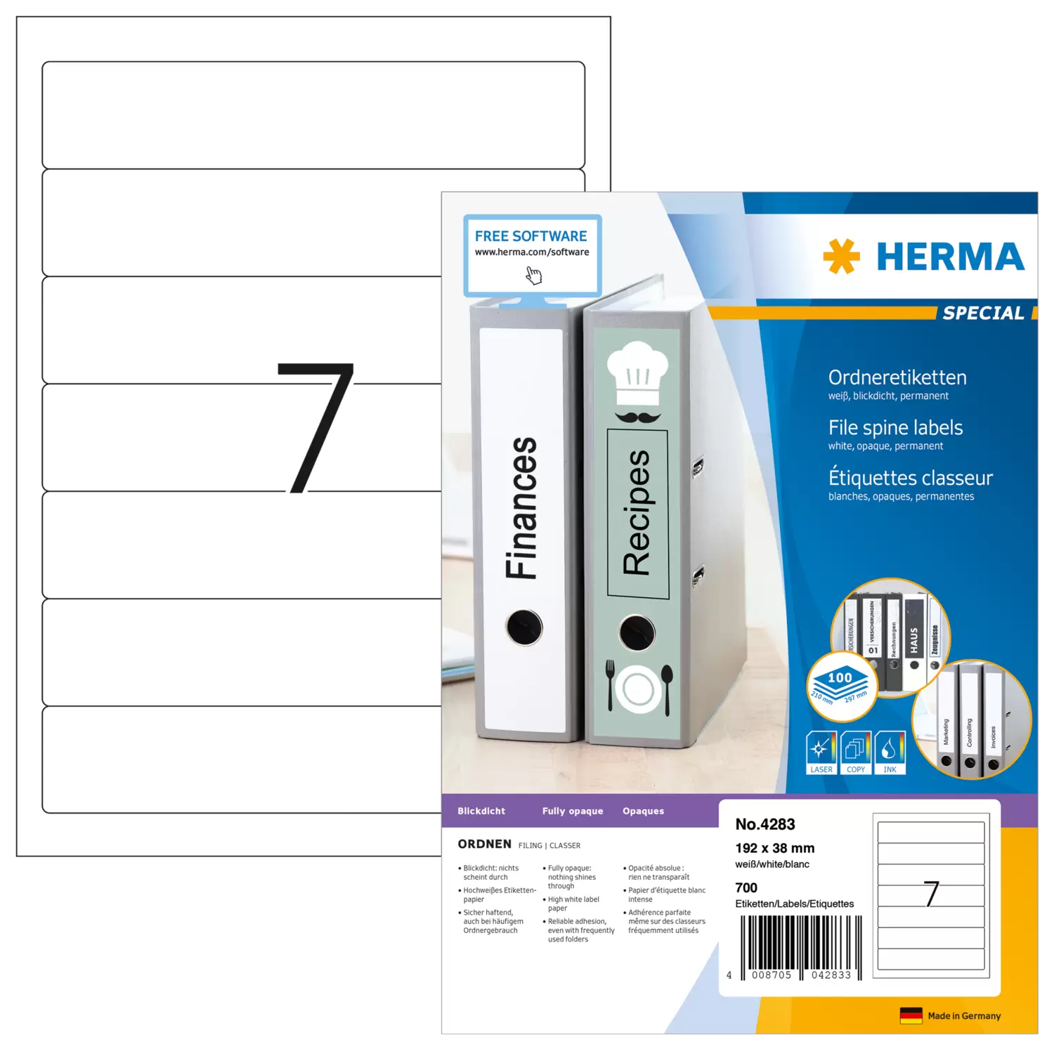 File labels A4, 192 x 38 mm, white, opaque, for narrow files (short)