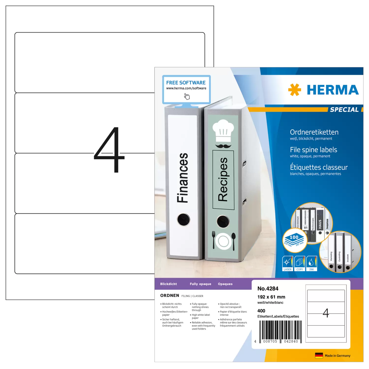 File labels A4, 192 x 61 mm, white, opaque, for wide files (short)