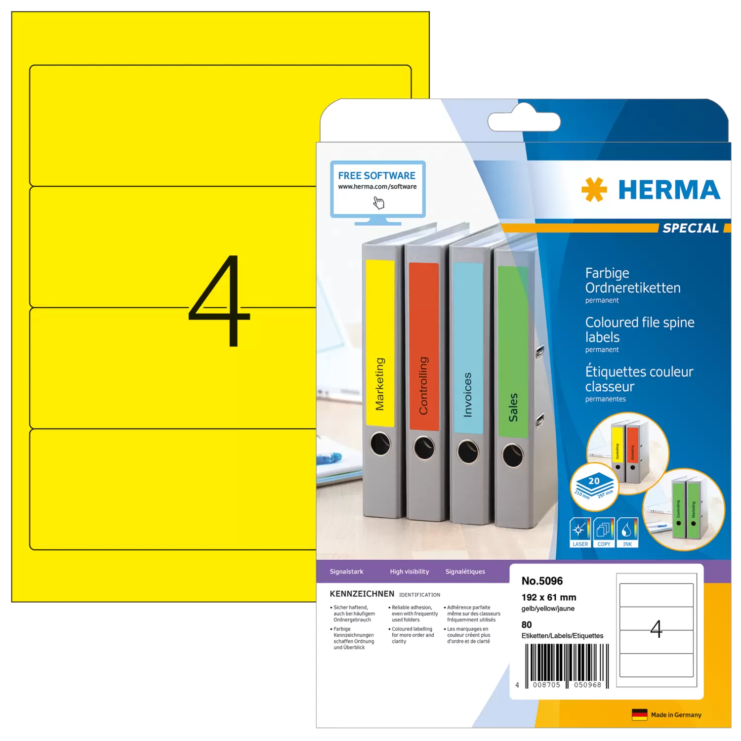 File labels A4, 192 x 61 mm, yellow, for wide files (short)