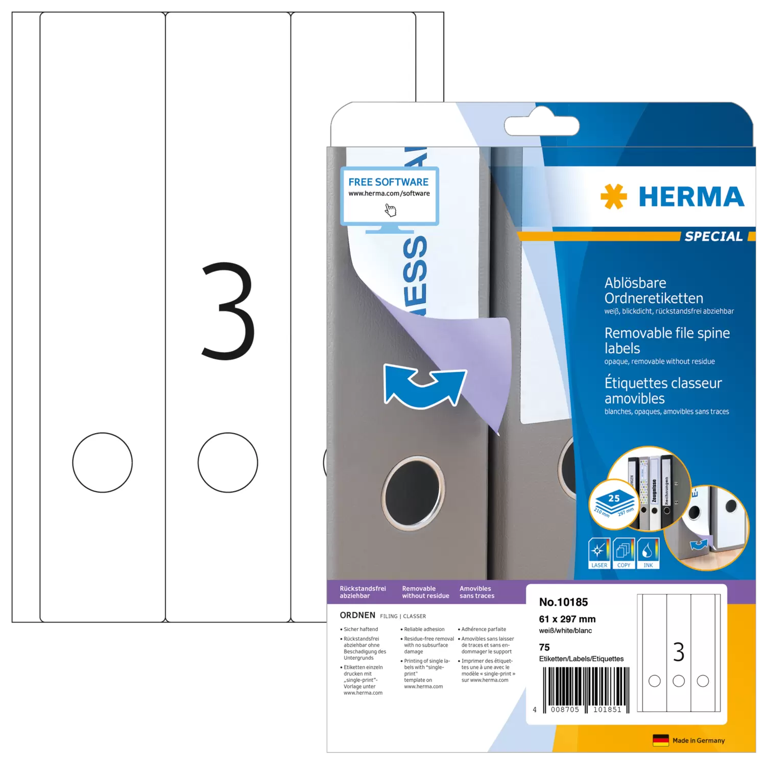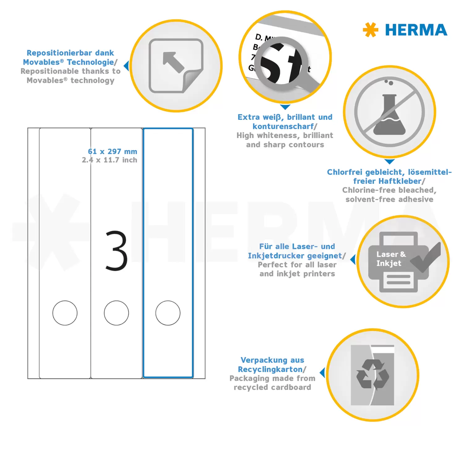 Removable file spine labels A4, 61 x 297 mm, white, opaque, for wide files (long)
