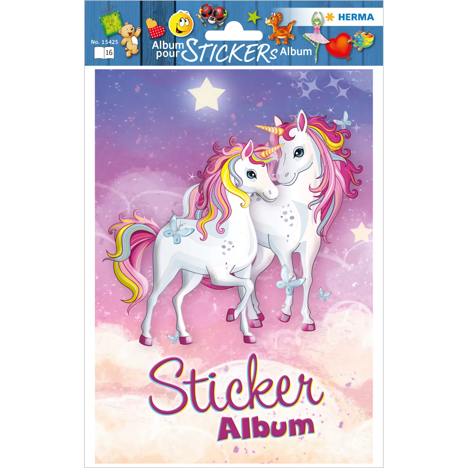 - Beautiful sticker album with the fairytale unicorns in the stars on the cover
