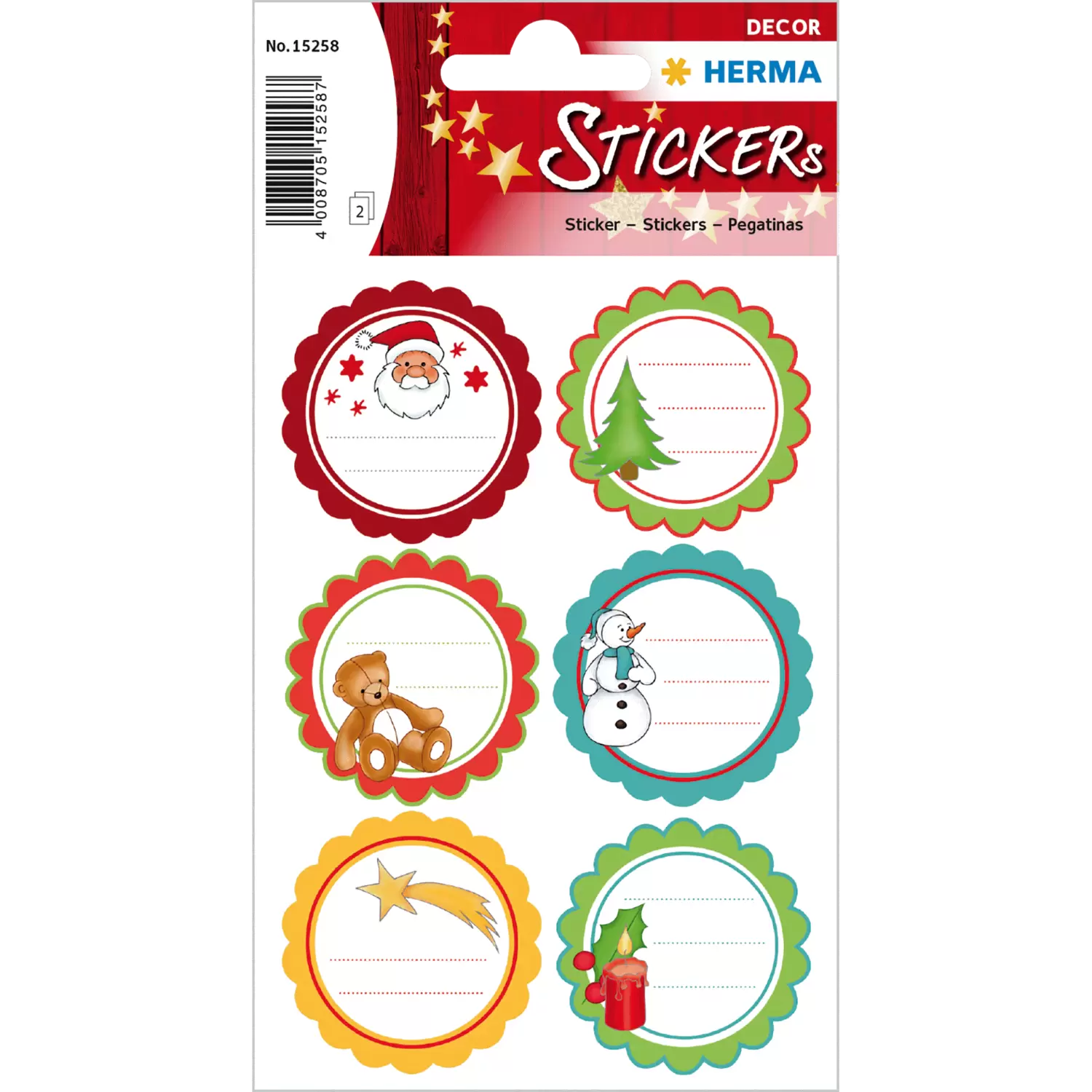 Self-adhesive decorative stickers, colourful printed with Christmas motifs. For decoration of presents, cards, or letters.