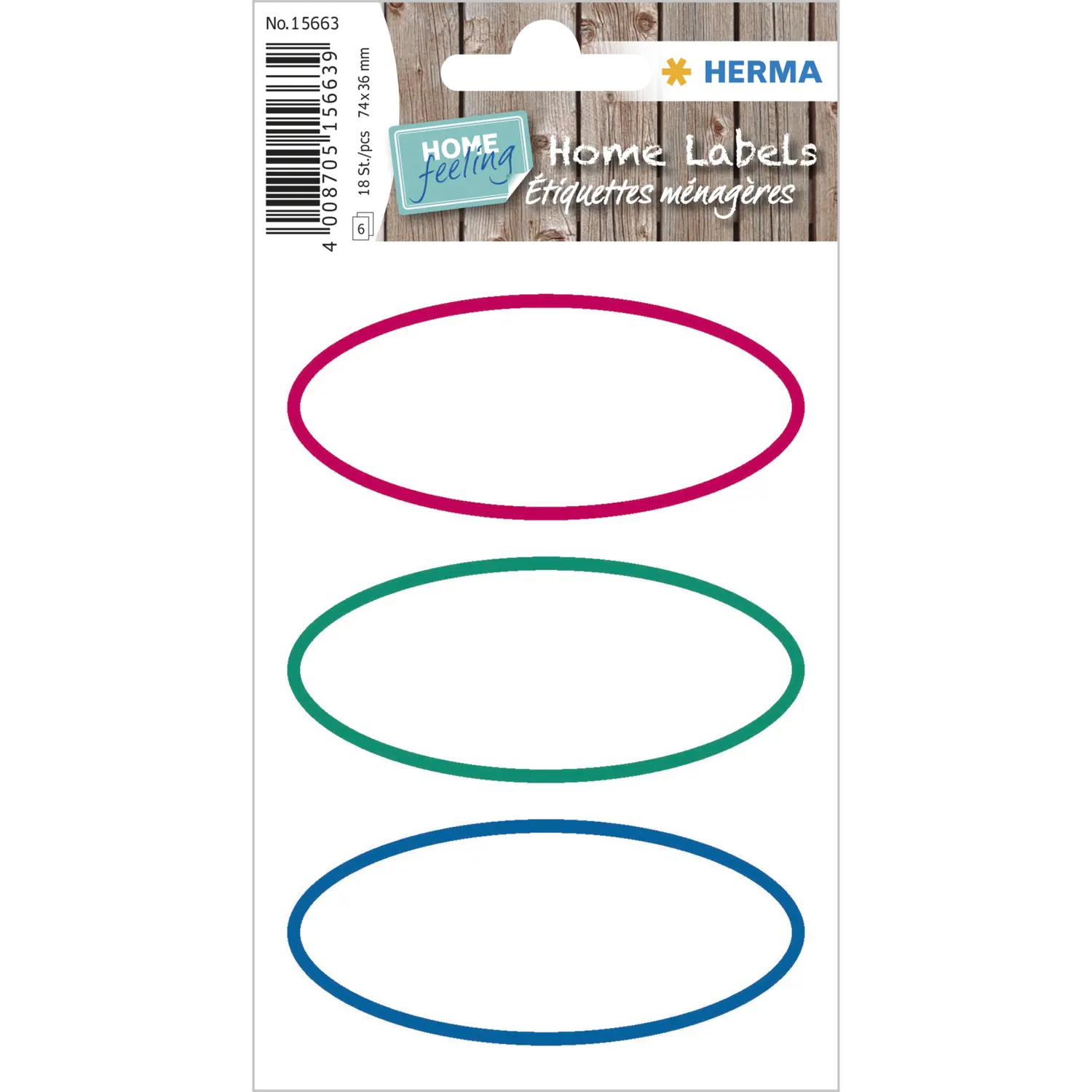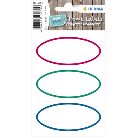 The little helpers in matters of order at home: What belongs to whom? Where does what belong? What's in there? Labelling and marking helps against the daily chaos in the household, saves nerves when finding things again and also beautifies the home. The practical self-adhesive labels for hand lettering from HERMA HOME in the small handy pack belong in every drawer. Spices, Tupperware, supplies and utensils in the kitchen, tools, boxes, crates and shelves in the cellar, drawers and much more can be labelled easily and clearly anywhere in the home. One pack includes 18 oval permanent adhesive labels with coloured frame in red, green and blue in the format 76 x 35 mm. The surface is matt and can be written on with felt tip pens and ballpoint pens without smearing. The rounded corners make it easy to peel the labels off the backing paper and stick them on as desired. Please note that the labels are not suitable for printers.