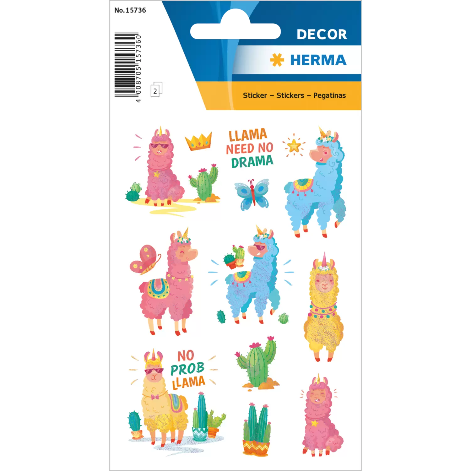 Hey Llama - no drama! The cheerful llamas in bright colours bring good mood to everyone! Cool with sunglasses and grinning merrily, a great motif for the sticker album, but also for decorating and embellishing. The highlight: the ornaments are made of delicate glitter - a great sparkling effect! Each pack contains 2 sheets of stickers with 12 stickers each. The stickers are made of high-quality paper, are permanently adhesive and self-adhesive on almost all surfaces. They can be easily peeled off and stuck on as desired. Perfect for decorating exercise books, files and folders, for crafts or for collecting and swapping.