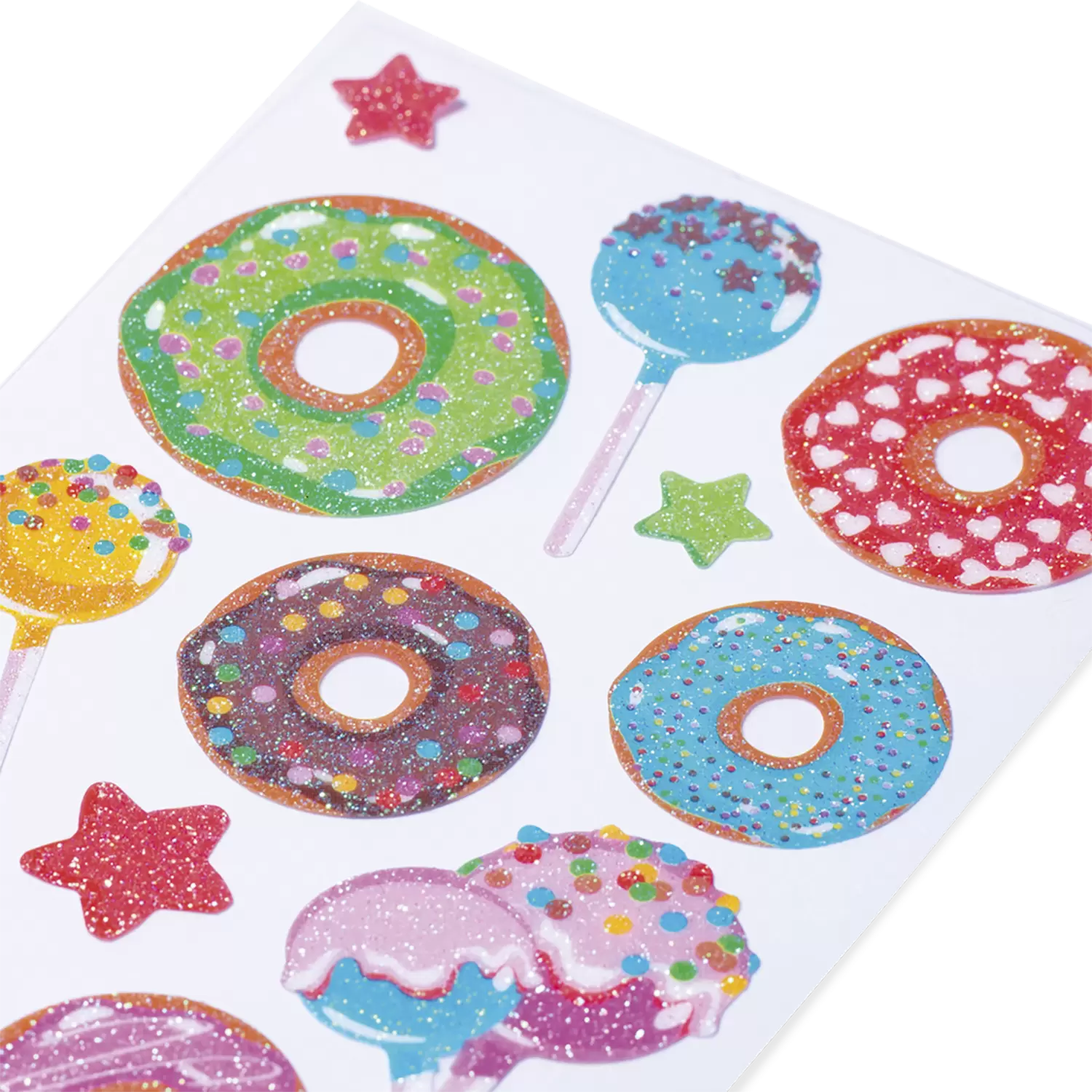 • Sweet donuts and cake pops with fine glitter