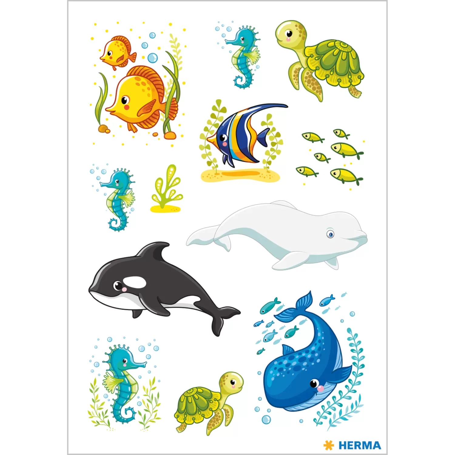 In the great wide sea, there are quite a few creatures. Colourful fish, turtles, seahorses and the singing giants of the depths: the whales! These beautifully designed stickers with underwater motifs are perfect for embellishing and decorating. Each pack contains 3 sheets of stickers with 12 stickers each. The stickers are made of high-quality paper, are permanently adhesive and self-adhesive on almost all surfaces. They can be easily peeled off and stuck on as desired. Perfect for decorating exercise books, files and folders, for crafts or for collecting and swapping.