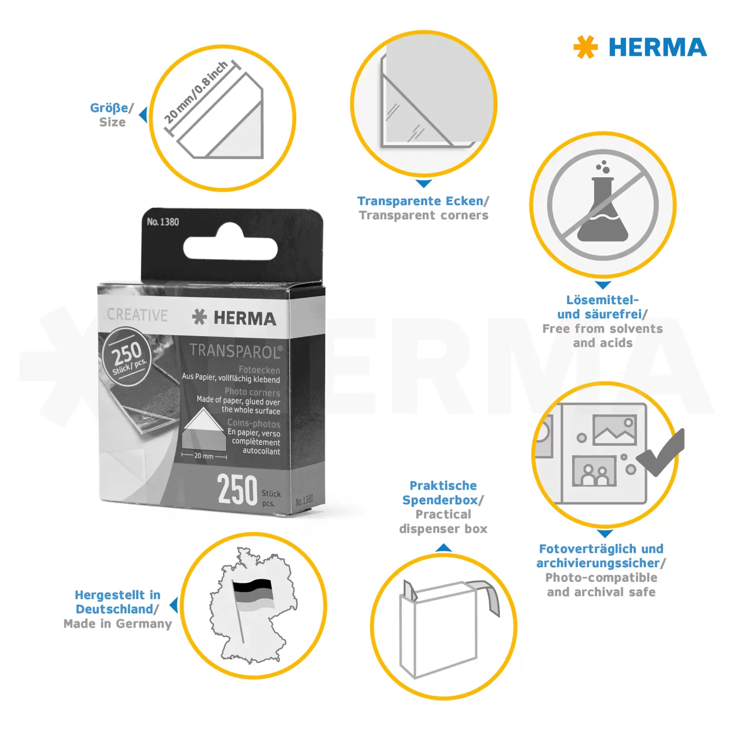 - HERMA Transparol photo corners, self-adhesive, with film corner, for inserting photos and postcards