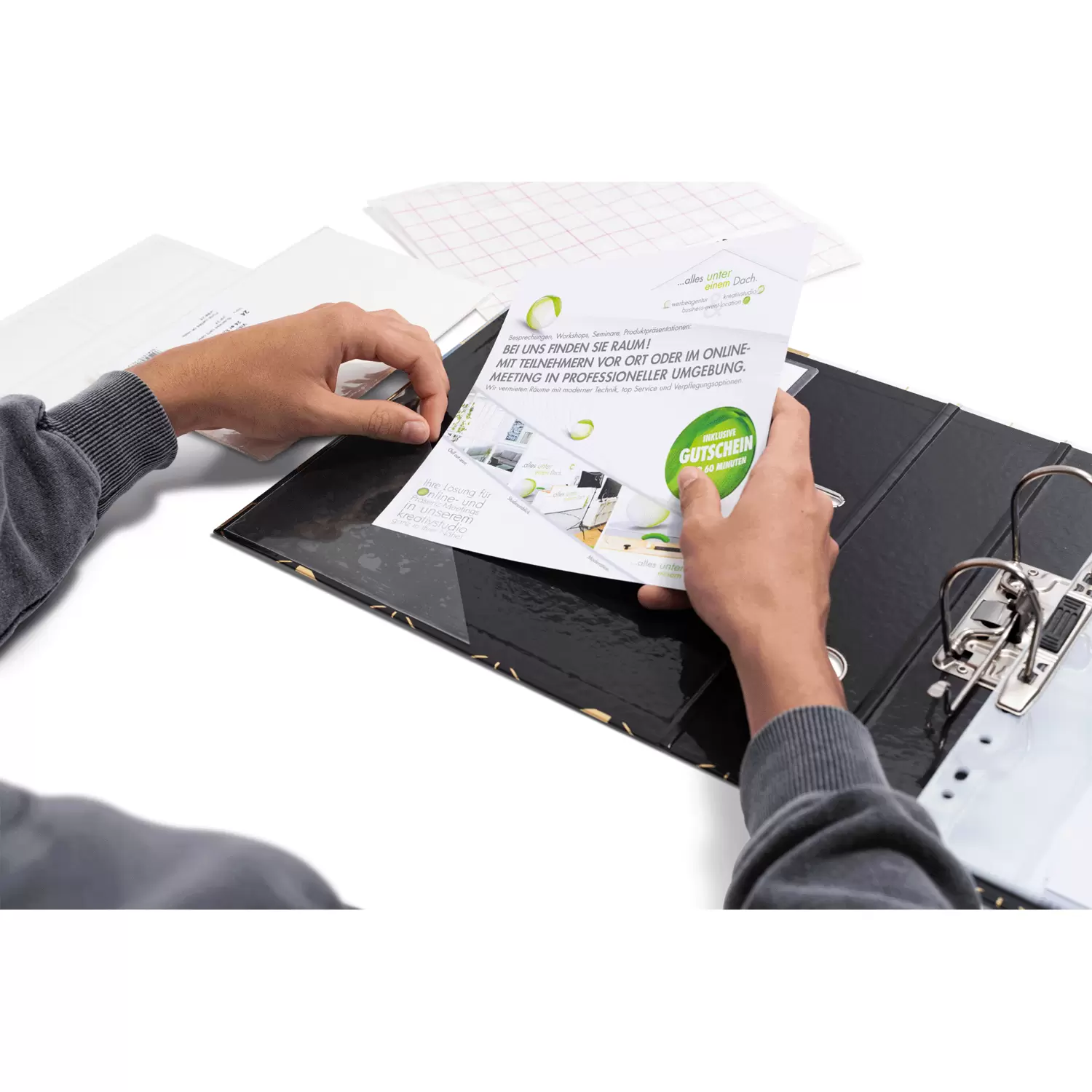 The practical extra pocket for sticking in albums, files and ring binders, offer and presentation folders: HERMA's transparent self-adhesive pouches. The triangular pouches, also known as adhesive corners or book card pockets, are made of crystal-clear polypropylene film with a side length of 14 cm, making them ideal for smaller documents such as business cards or flyers, brochures and overview sheets. The triangular pouches are easy to attach, self-adhesive and adhere firmly to smooth surfaces. So documents that are often used such as calendars, timetables or To Do Lists, but also business cards or brochures for business appointments are always at hand. Simply peel off the backing paper, stick the triangular pocket in the position you want, insert the papers and use previously unused space wisely. Clever and practical.
