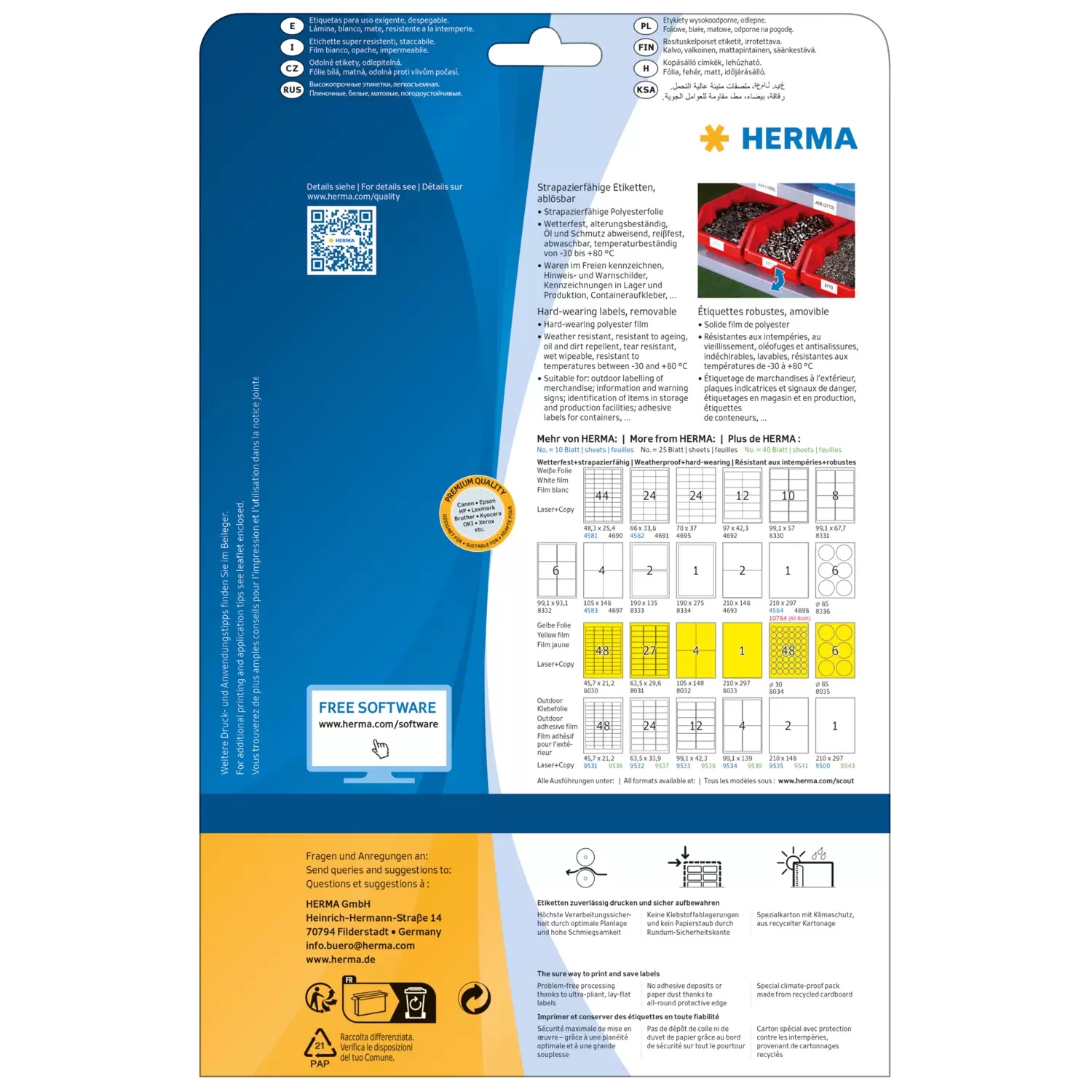 - Ideal for identification of items in storage and production facilities, barcode labels, information signs, labelling of property and inventories