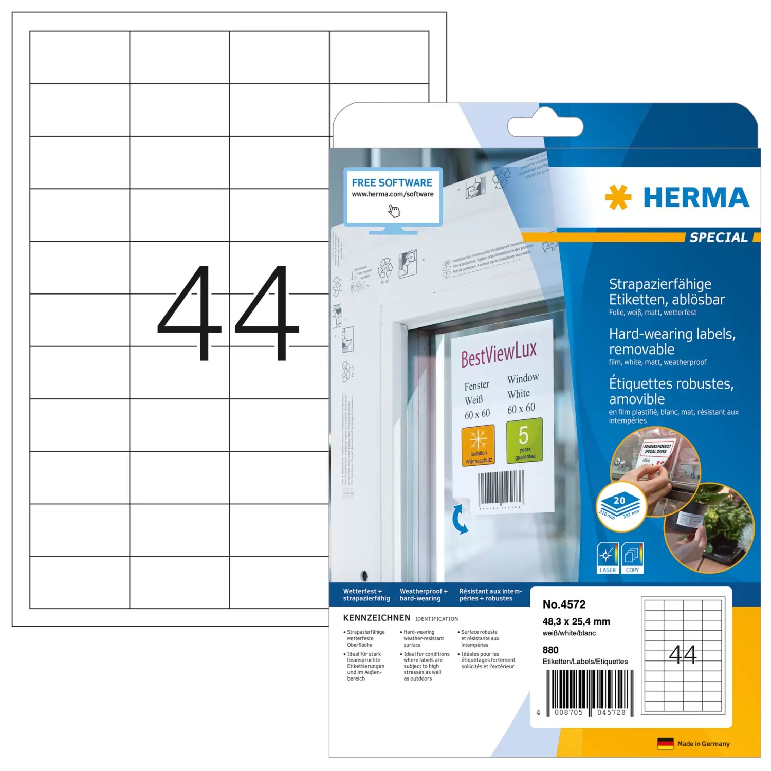 Weatherproof film labels A4, 48,3 x 25,4 mm, white, removable