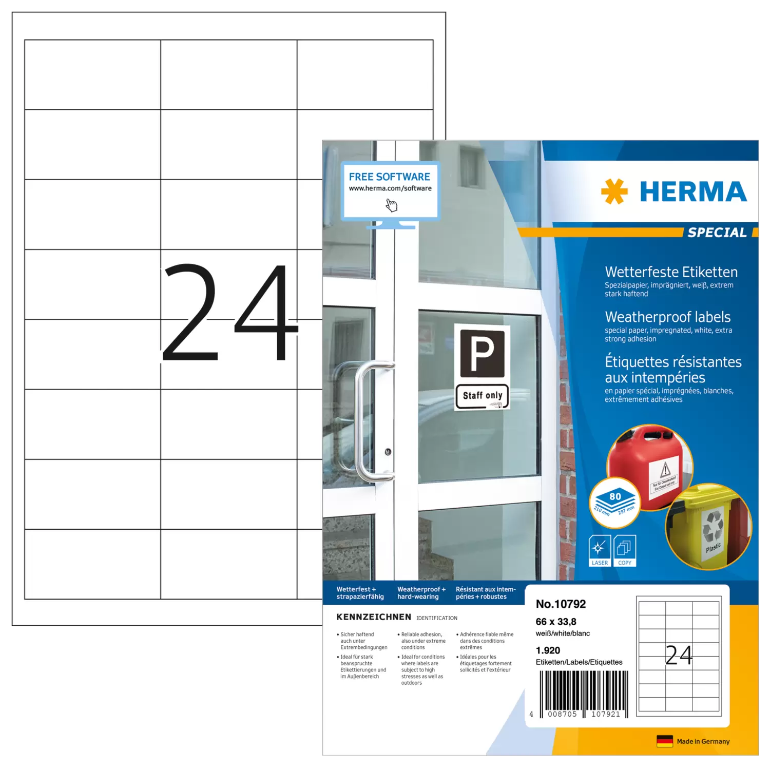 Weatherproof labels A4, 66 x 33,8 mm, white, extremely strong adhesion, impregnated